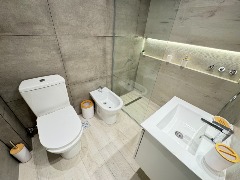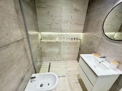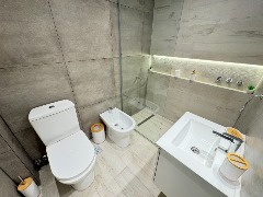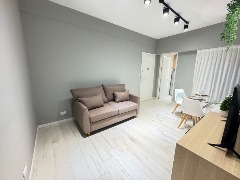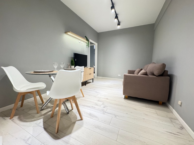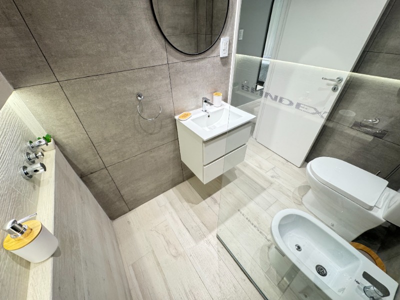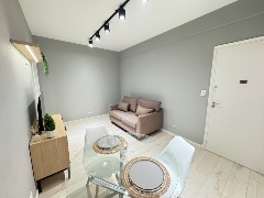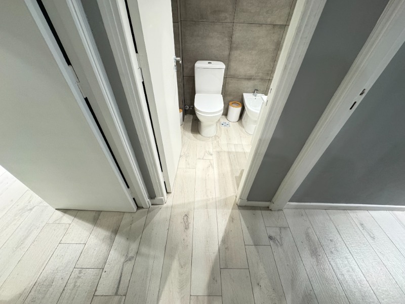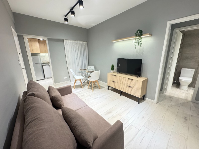 Living comedor al contrafrente con piso de porcelanato y calefactor tiro balanceado