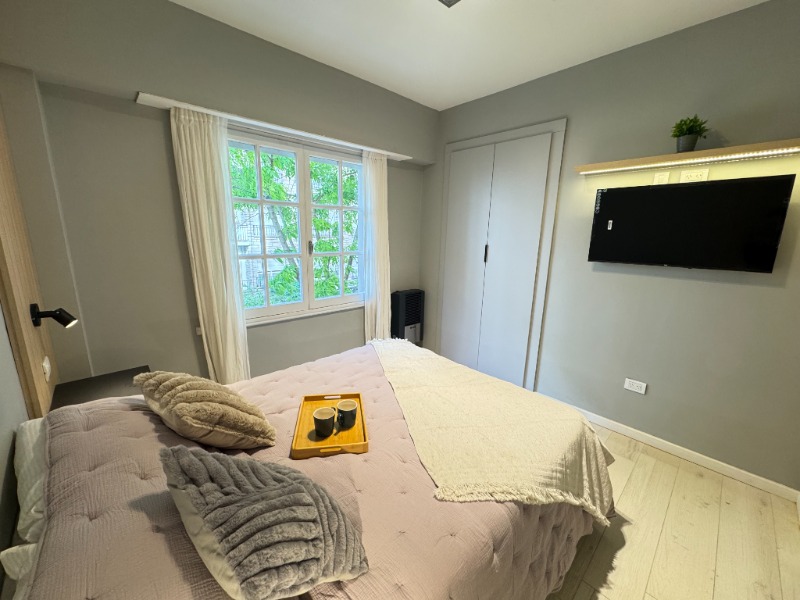 Dormitorio principal a la calle con ventana con piso de parquet, calefactor tiro balanceado y placard a medida