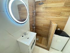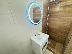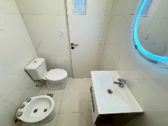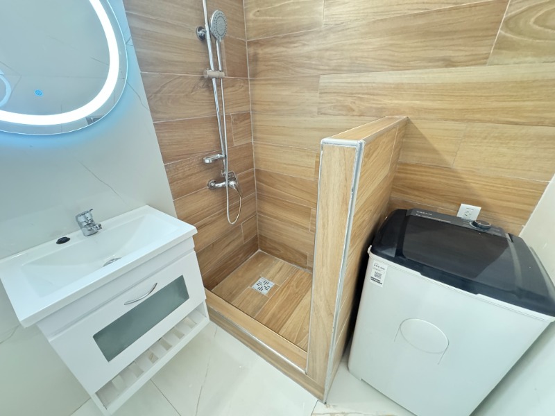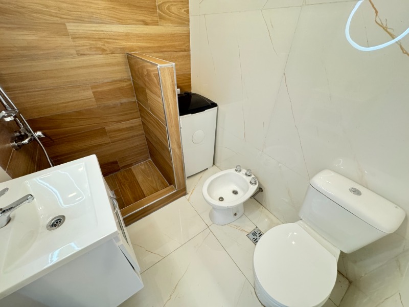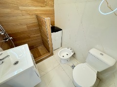 Baño completo con revestimientos en porcelanato y conexión para lavarropas automatico.