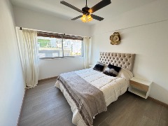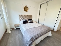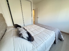 Dormitorio con piso de porcelanato, placard a medida y conexión para calefactor tiro balanceado