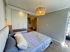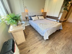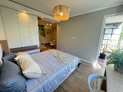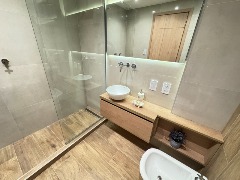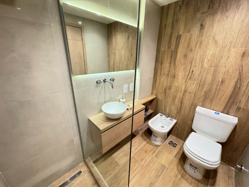 Ambiente desplazado con piso de porcelanato, calefactor tiro balanceado, placard y balcón saliente