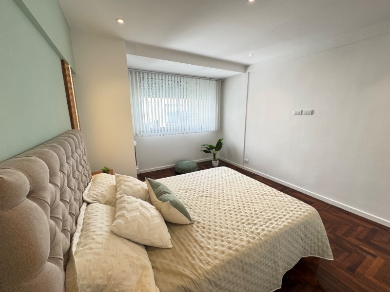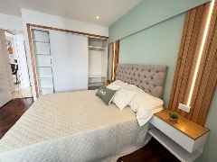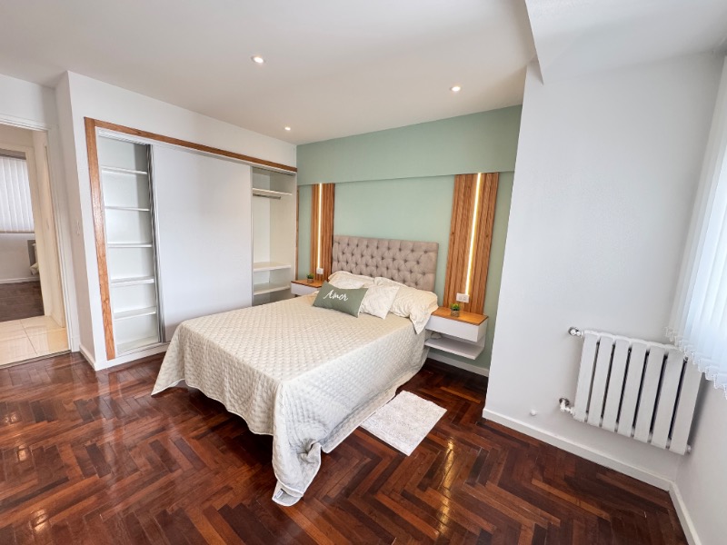 Dormitorio principal externo con piso de parquet y placard a medida