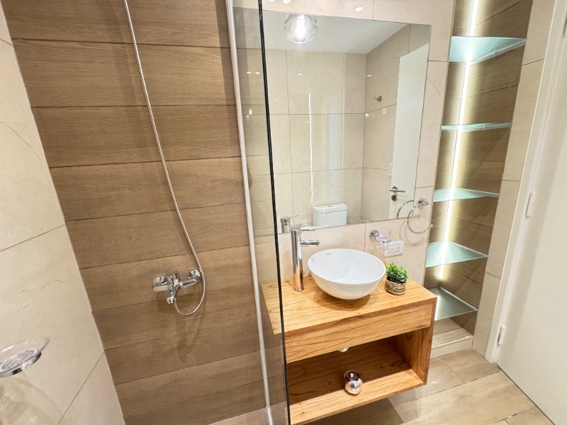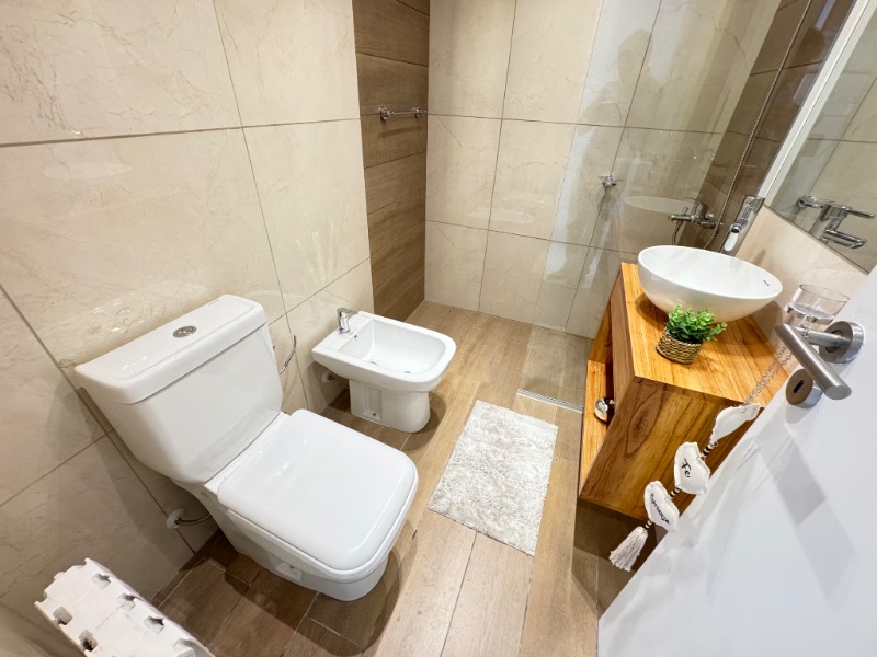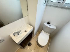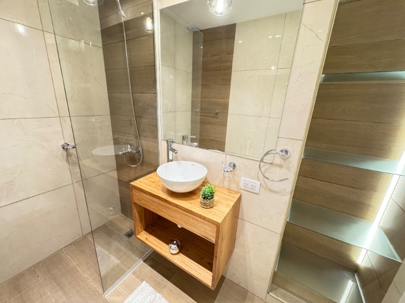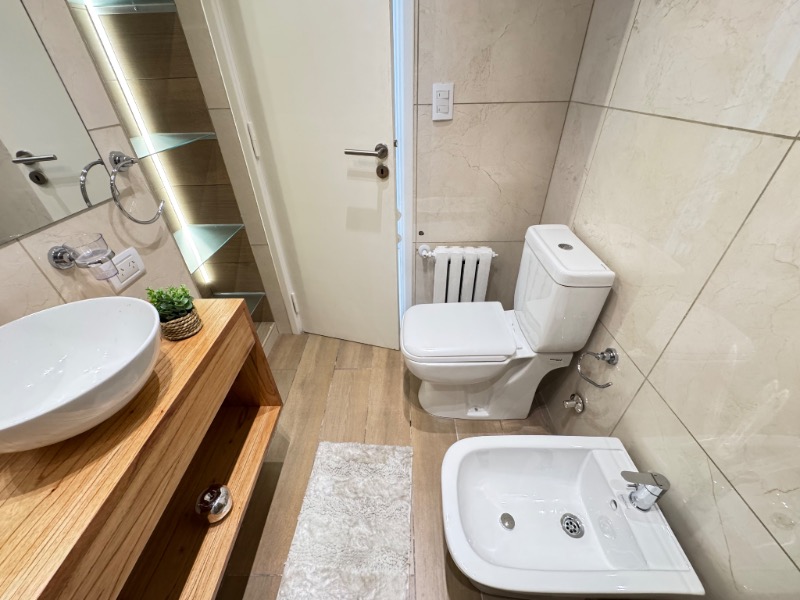 Baño completo y toilette con piso y revestimientos en porcelanato