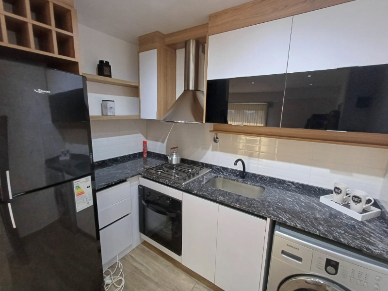 - Cocina semi integrada con revestimientos en cerámicos, campana, amueblamientos a medida y barra desayunadora, cuenta con heladera con freezer y lavarropas automático