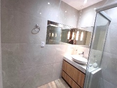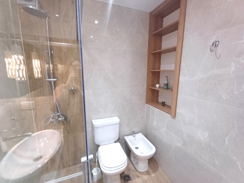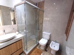 - Baño completo con revestimientos en porcelanato y box de ducha
