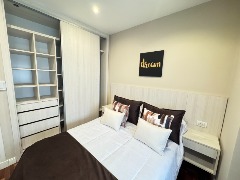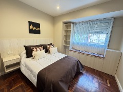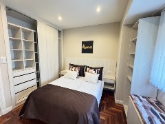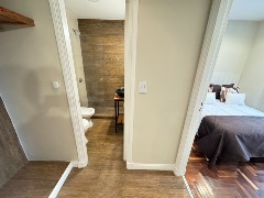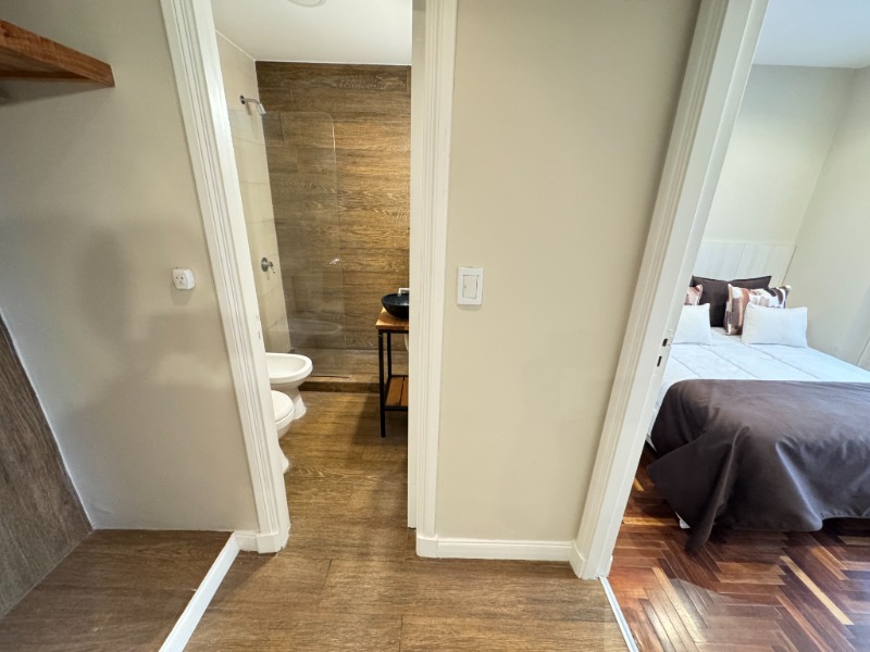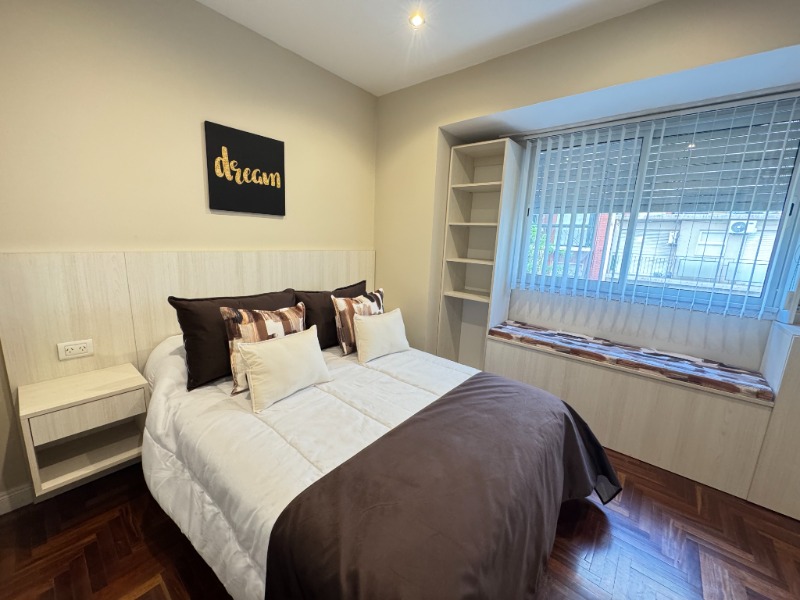 Dormitorio externo con piso de parquet hidrolaqueado y placard a medida