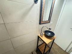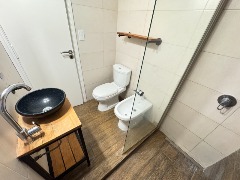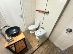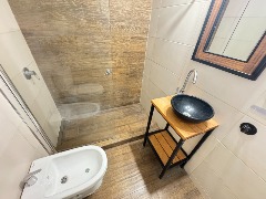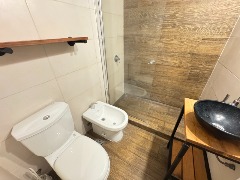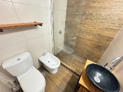 Baño completo con pediluvio, revestimientos en cerámicos y ventilación natural