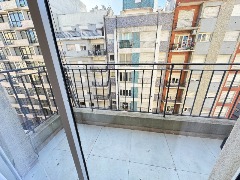 -Ambiente desplazado con piso de porcelanato, conexión para calefactor y balcón terraza