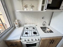 Cocina separada con revestimientos en cerámicos, amueblamientos a medida y ventilación natural