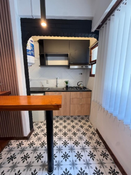 - Cocina separada con revestimientos en porcelanato, amueblamientos a medida, ventilación natural y conexión para lavarropas automatico, cuenta con heladera con freezer, microondas y lavarropas automatico