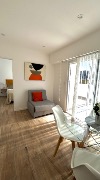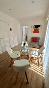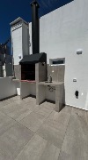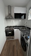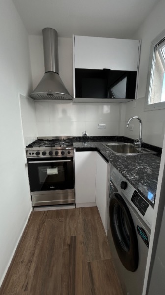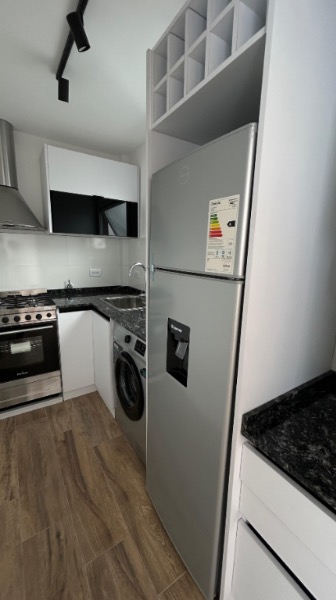 - Cocina separada con revestimientos en porcelanato, amueblamientos a medida, ventilación natural y conexión para lavarropas automatico, cuenta con heladera con freezer, microondas y lavarropas automatico