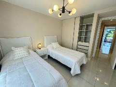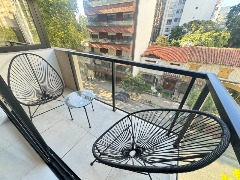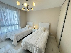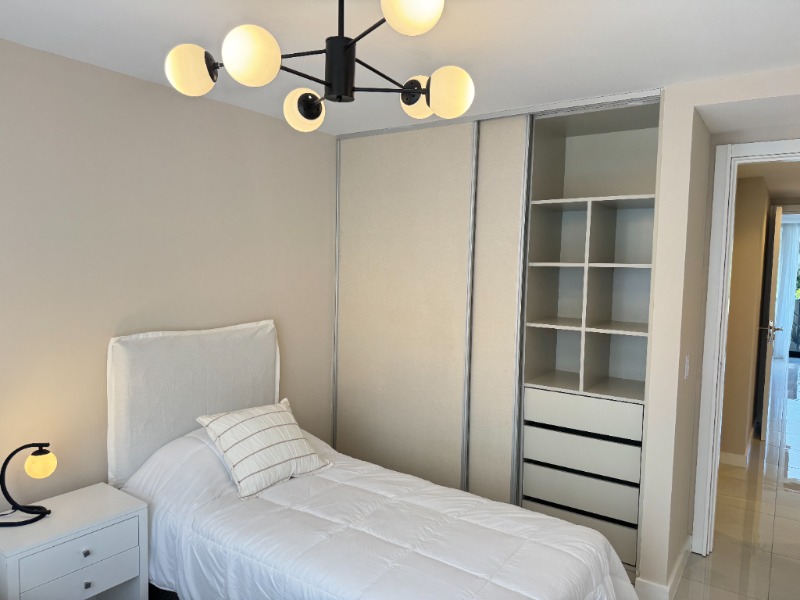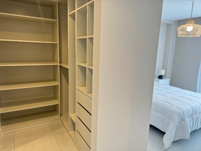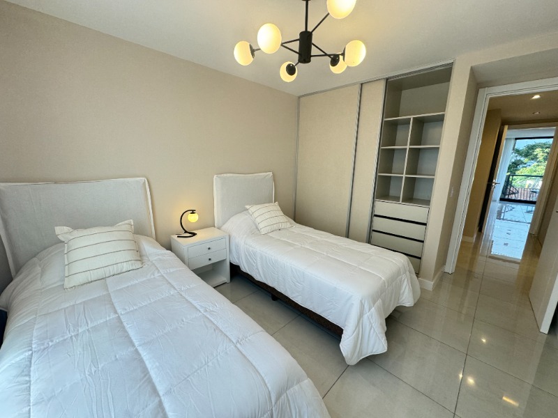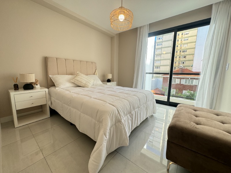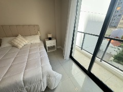 - Segundo dormitorio con piso de porcelanato, placard a medida y balcón saliente con vista abierta