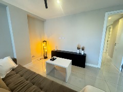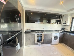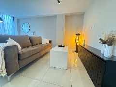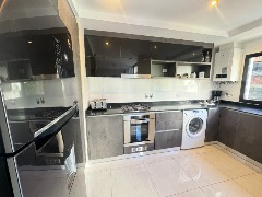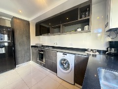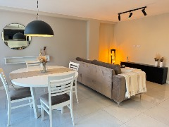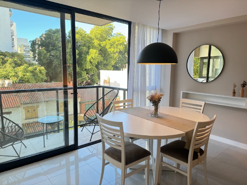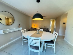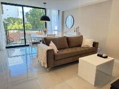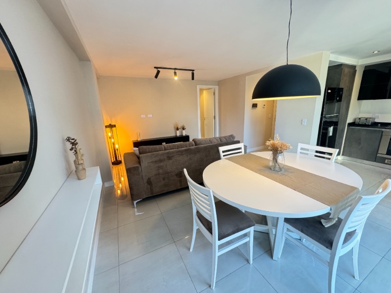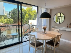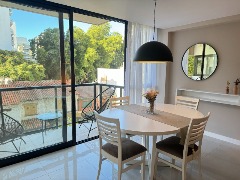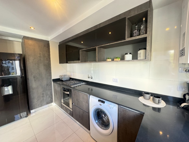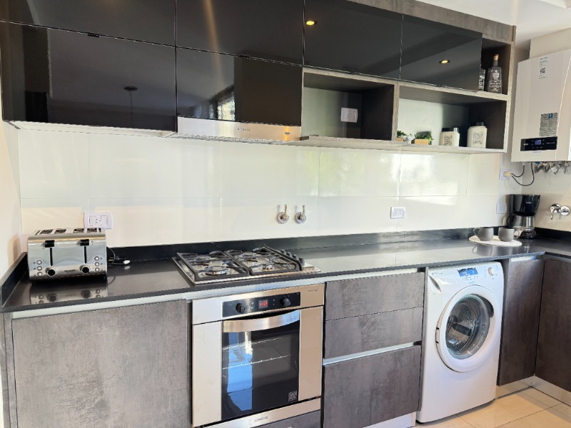 - Cocina semi integrada externa con revestimientos en porcelanato, amueblamientos a medida y conexión para lavarropas automático, cuenta con heladera con freezer, lavarropas automático, anafe y horno empotrado