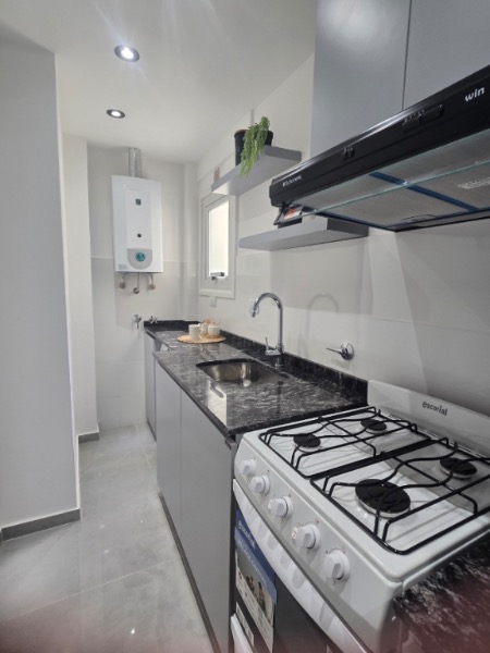 - Cocina separada con revestimientos en porcelanato, amueblamientos a medida, conexión para lavarropas automatico y ventilación natural