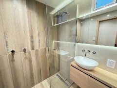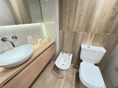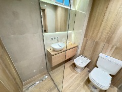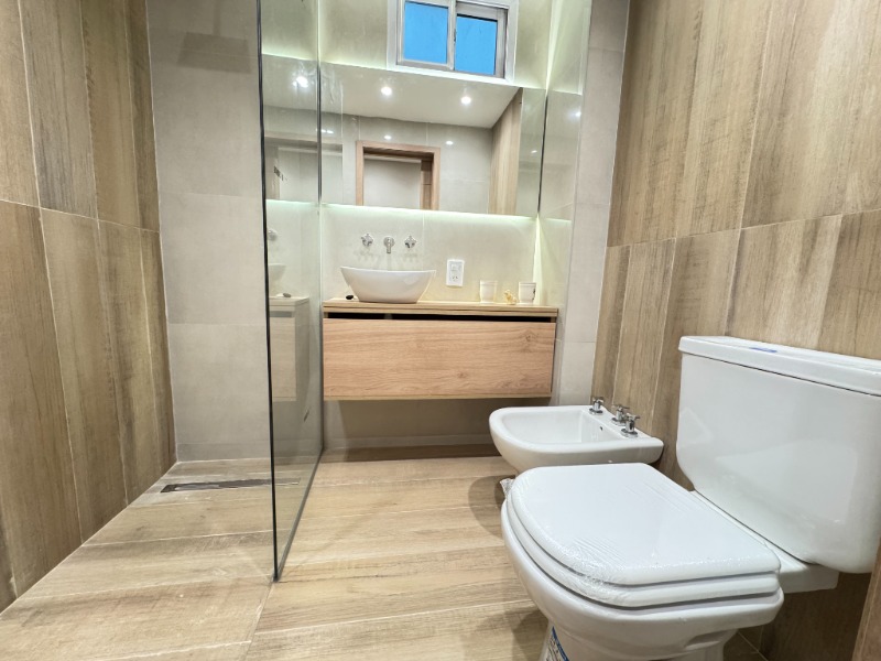 Baño completo con piso y revestimientos en porcelanato