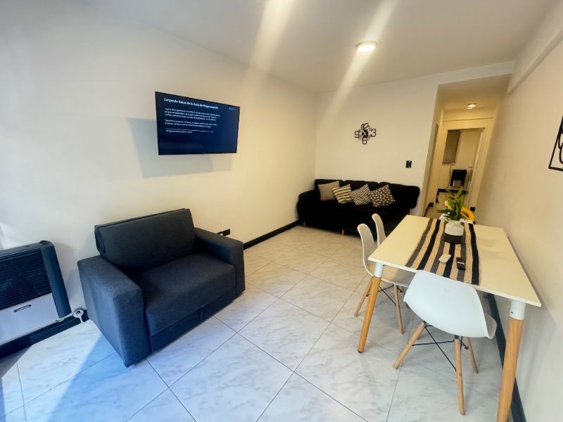 - Living comedor amplio con piso de cerámicos, calefactor tiro balanceado y balcón saliente