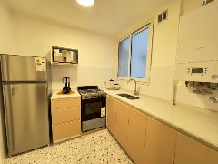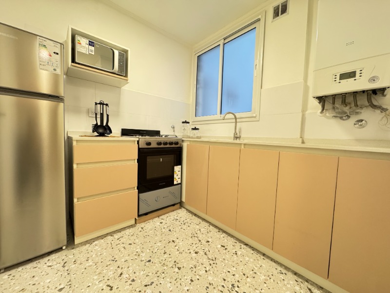 - Cocina separada con revestimientos en porcelanato, ventilación natural y amueblamientos a medida.