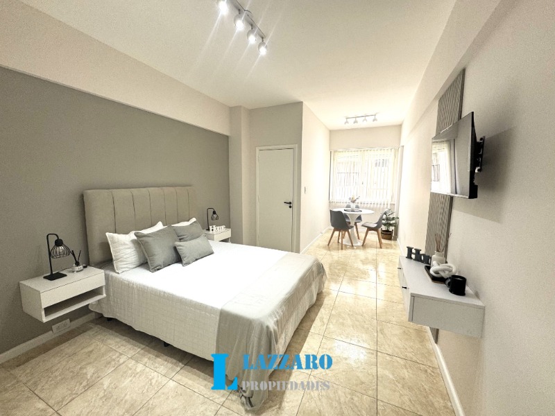 Dormitorio externo con piso de porcelanato, placard a medida y conexión para calefactor tiro balanceado