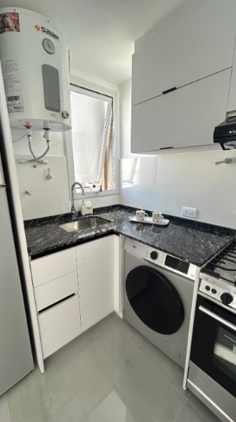 - Cocina semi integrada con revestimientos en porcelanato, amueblamientos a medida y conexión para lavarropas automatico, cuenta con heladera con freezer y lavarropas automatico