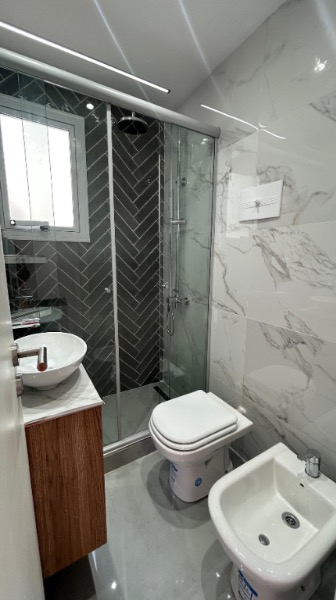 - Baño completo con revestimientos en porcelanato y ventilación natural