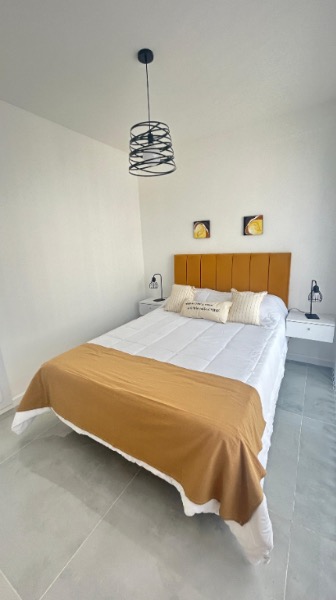- Dormitorio externo con piso de porcelanato, placard a medida y salida al balcón terraza