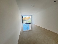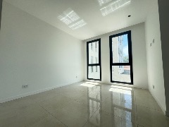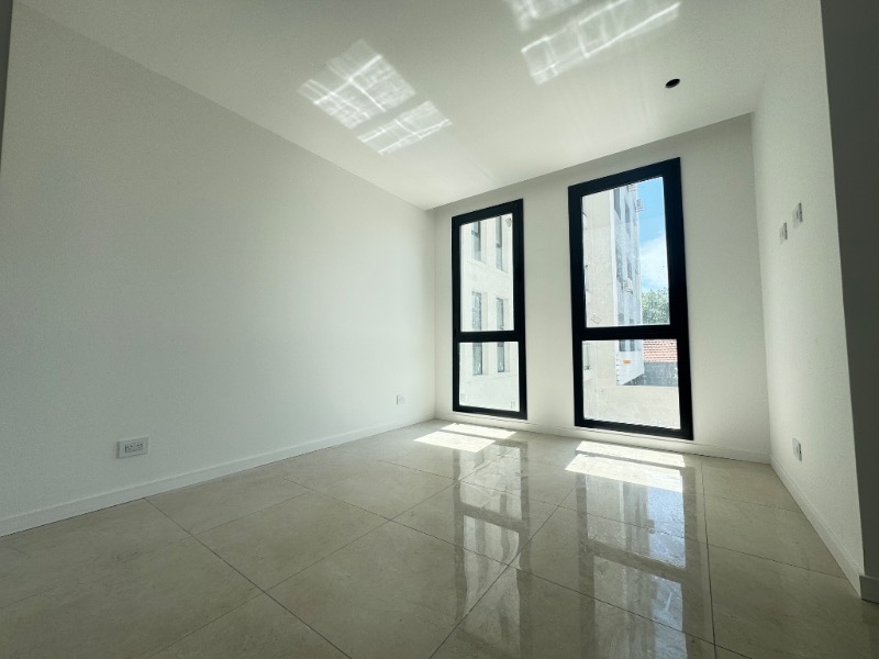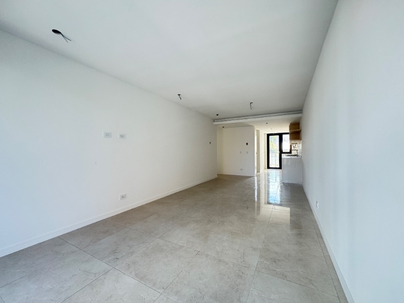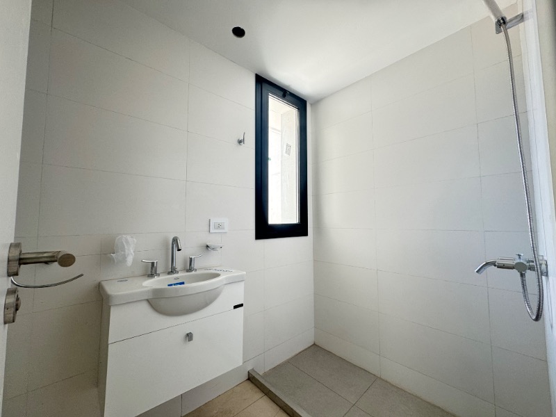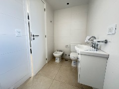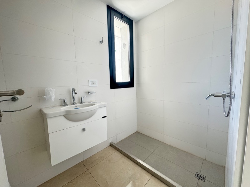 Dormitorio en suite al lateral, piso porcelanato, split frío/calor, con salida al balcón terraza.