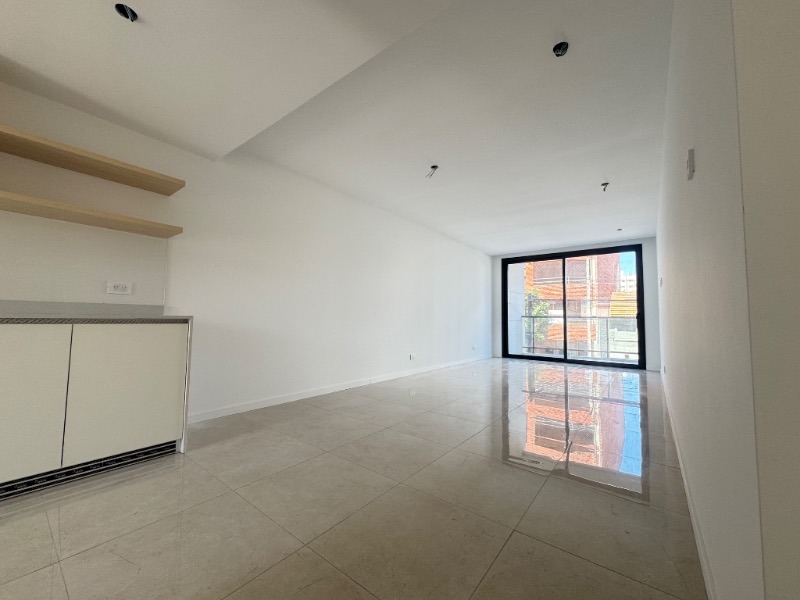 Living comedor con piso de porcelanato, calefactor tiro balanceado y balcón saliente