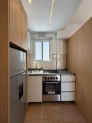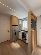 - Cocina integrada con revestimientos en porcelanato, amueblamientos a medida y ventilación natural