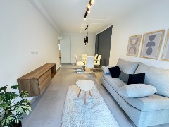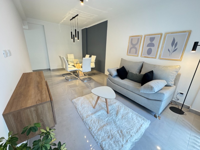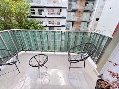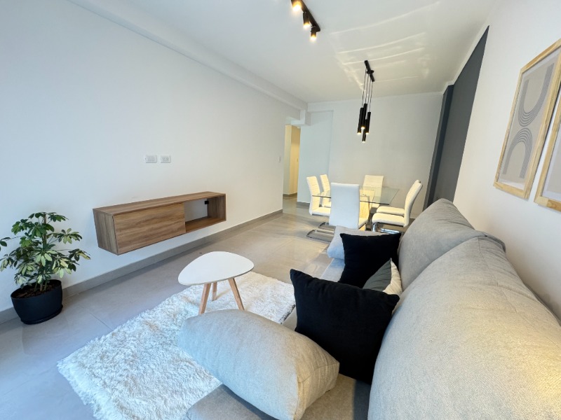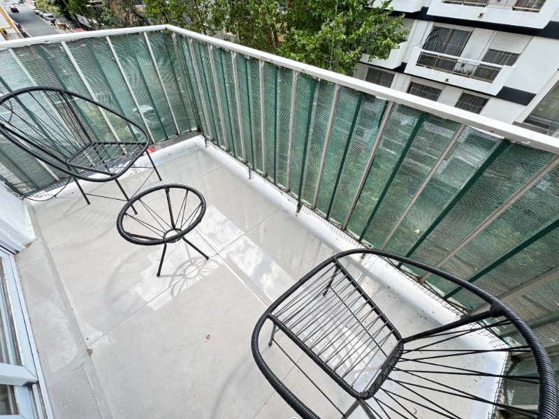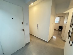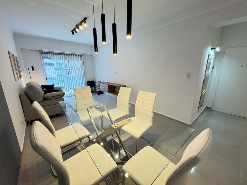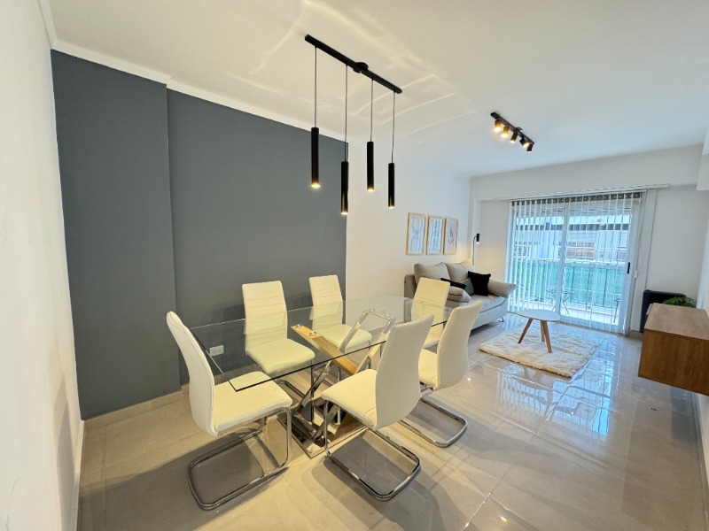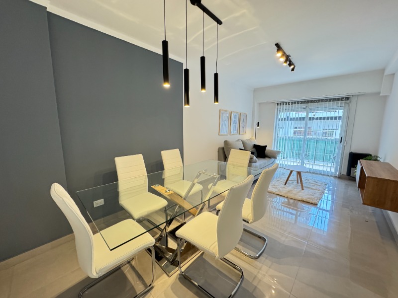Living comedor con piso de porcelanato, calefactor tiro balanceado y balcón saliente