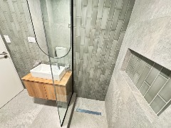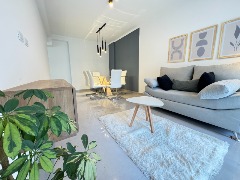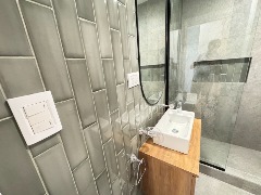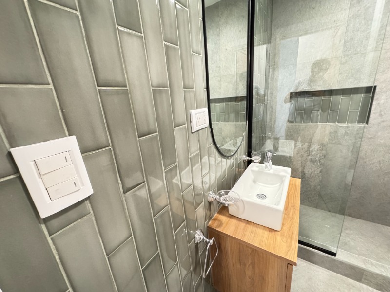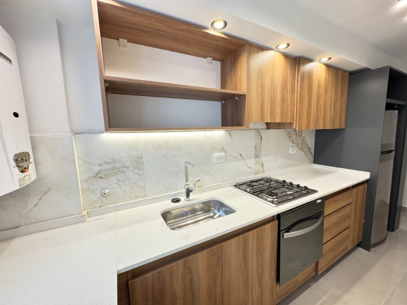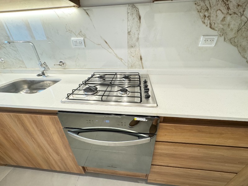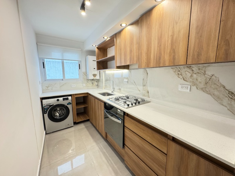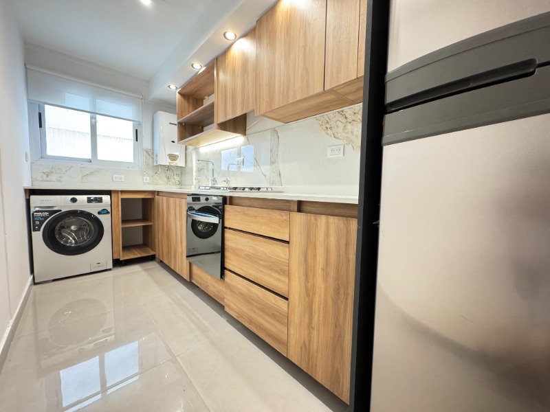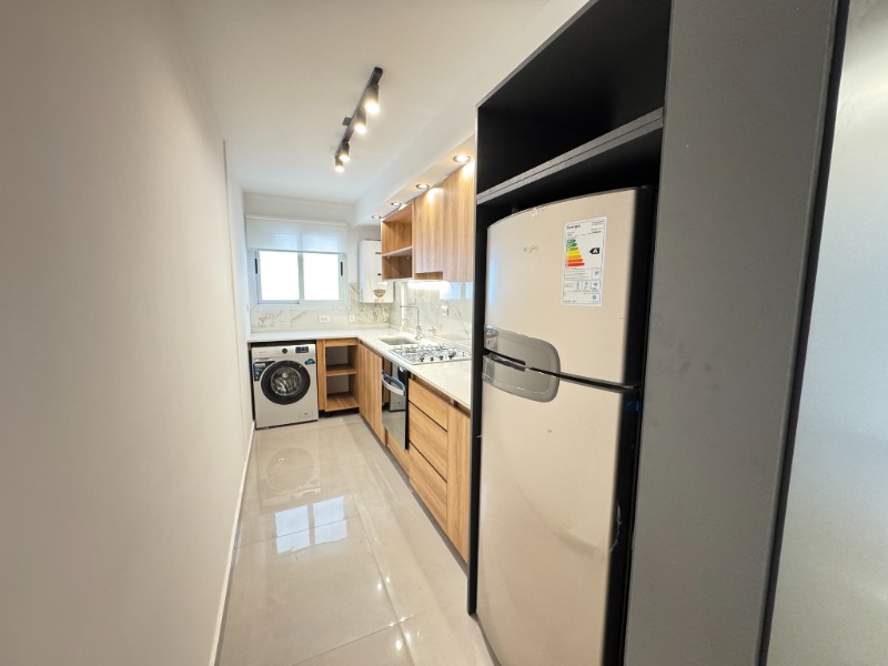 Cocina separada con revestimientos en porcelanato, amueblamientos a medida y conexión para lavarropas automatico, cuenta con heladera con freezer, lavarropas automatico, anafe y horno empotrado