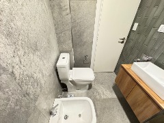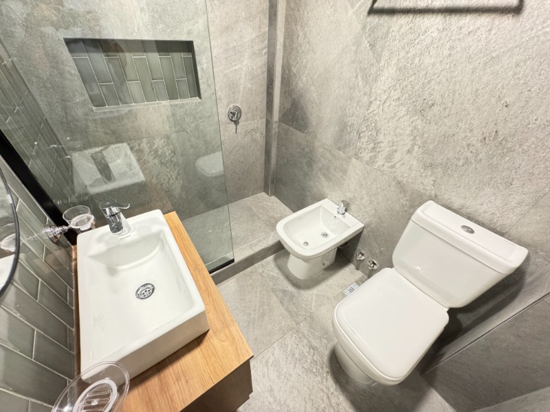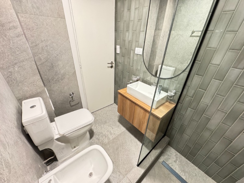 Dormitorio principal contrafrente con piso de porcelanato, calefactor tiro balanceado y vestidor