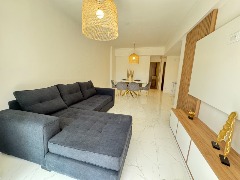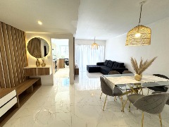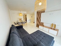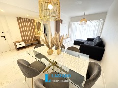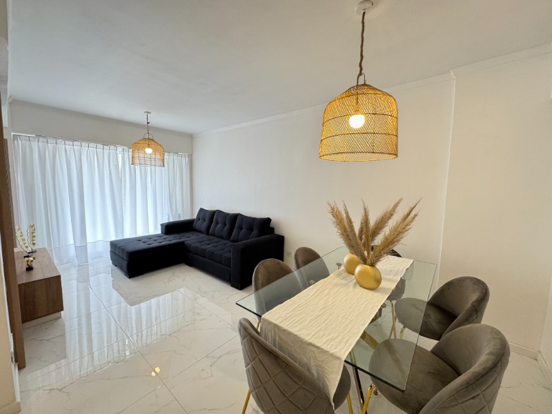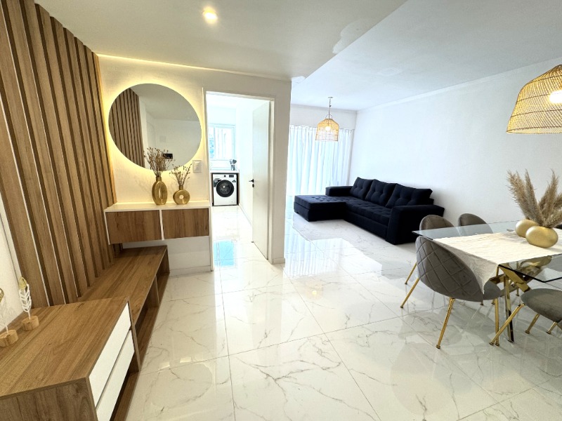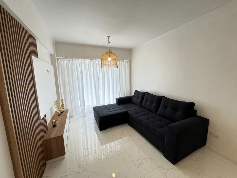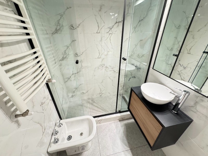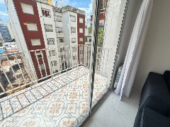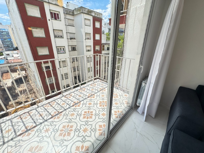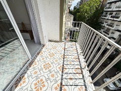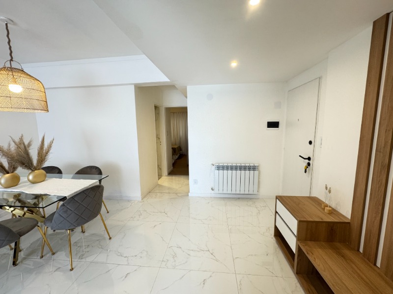 Living comedor con piso de porcelanato, calefacción por radiadores y balcón saliente