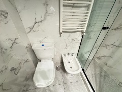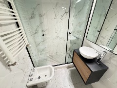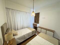 Segundo dormitorio con piso de porcelanato, placard a medida y calefacción por radiadores