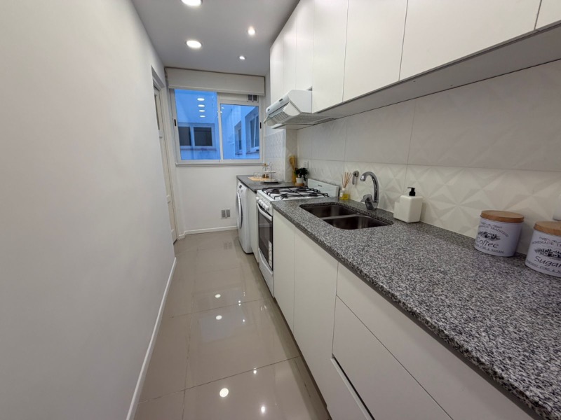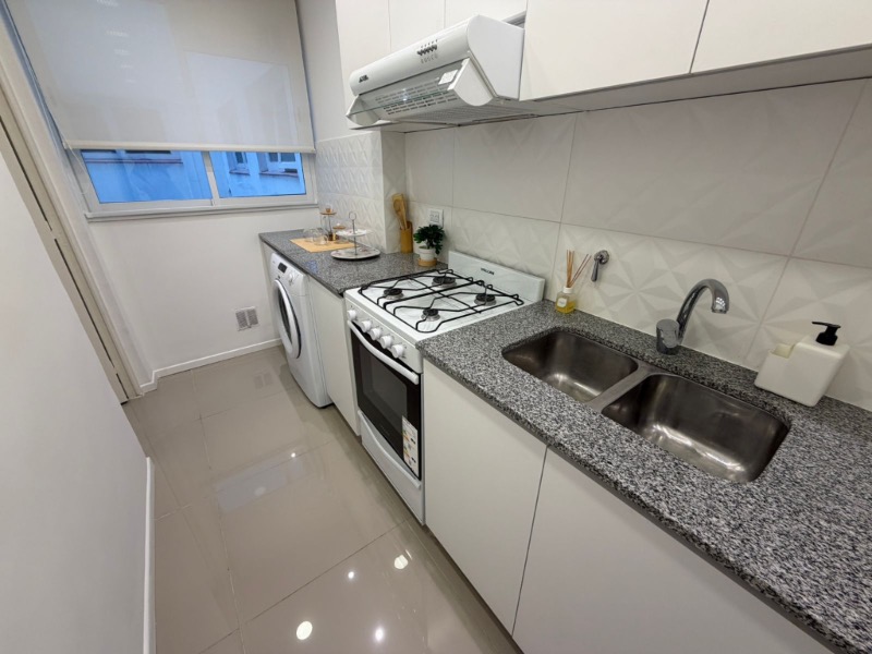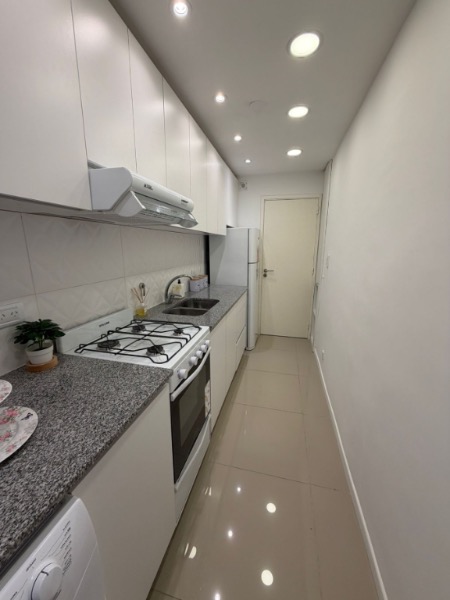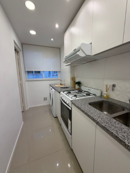 -Cocina separada con revestimientos en porcelanato, ventilación natural, amueblamientos a medida y conexión para lavarropas automático