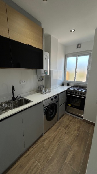 - Cocina separada externa con revestimientos en porcelanato, amueblamientos a medida, ventilación natural y conexion para lavarropas automatico, cuenta con heladera con freezer, microondas y lavarropas automatico